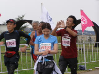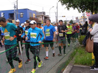 | 10時、スタートの号砲は、聞いたがスタート地点から、200メートル手前の地点 | 続々とスタートしていく選手たち | ||||
