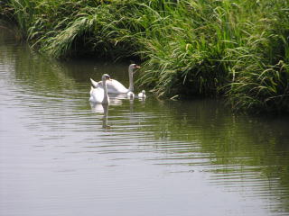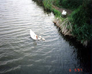 | 手賀沼公園の白鳥 手賀沼公園のカップルに待望の雛5羽の誕生 2003年5月13日撮影 大津川ヒドリ橋周辺にて |